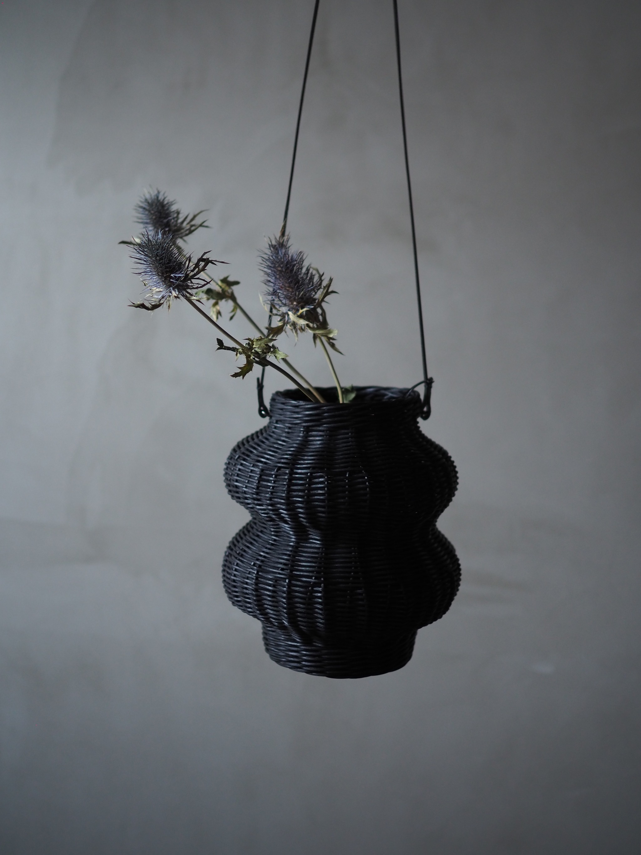 材料である籐(とう)の染色から始まり、全て手作業でありながらスタイリッシュでプロダクト感のあるかごバッグ達。