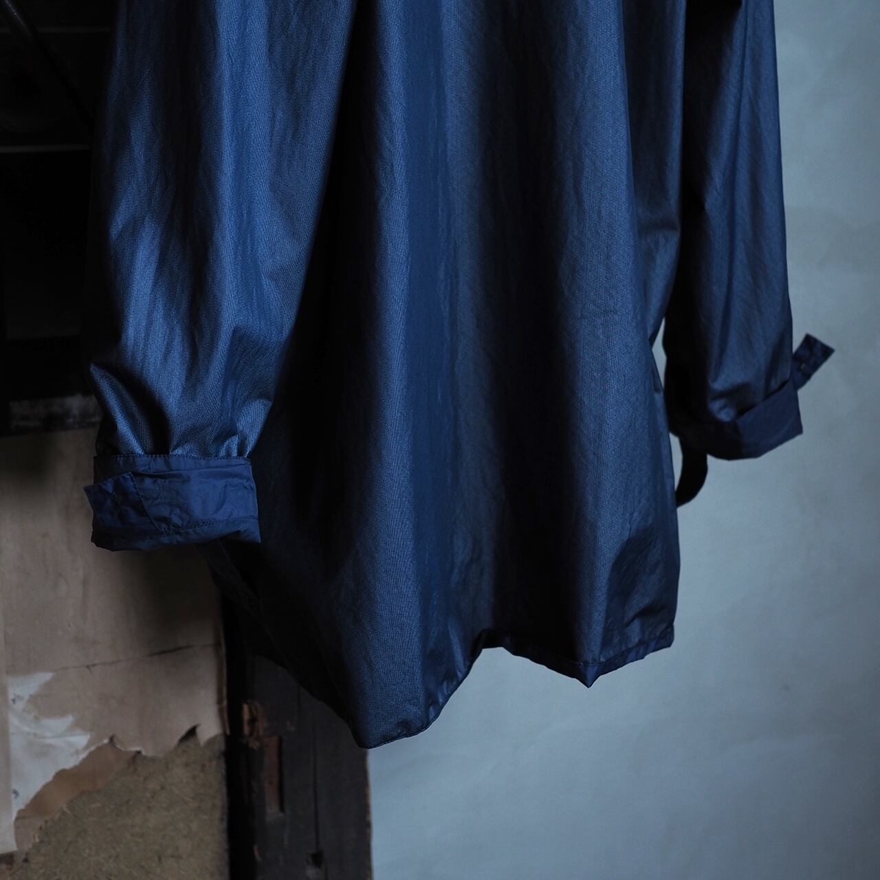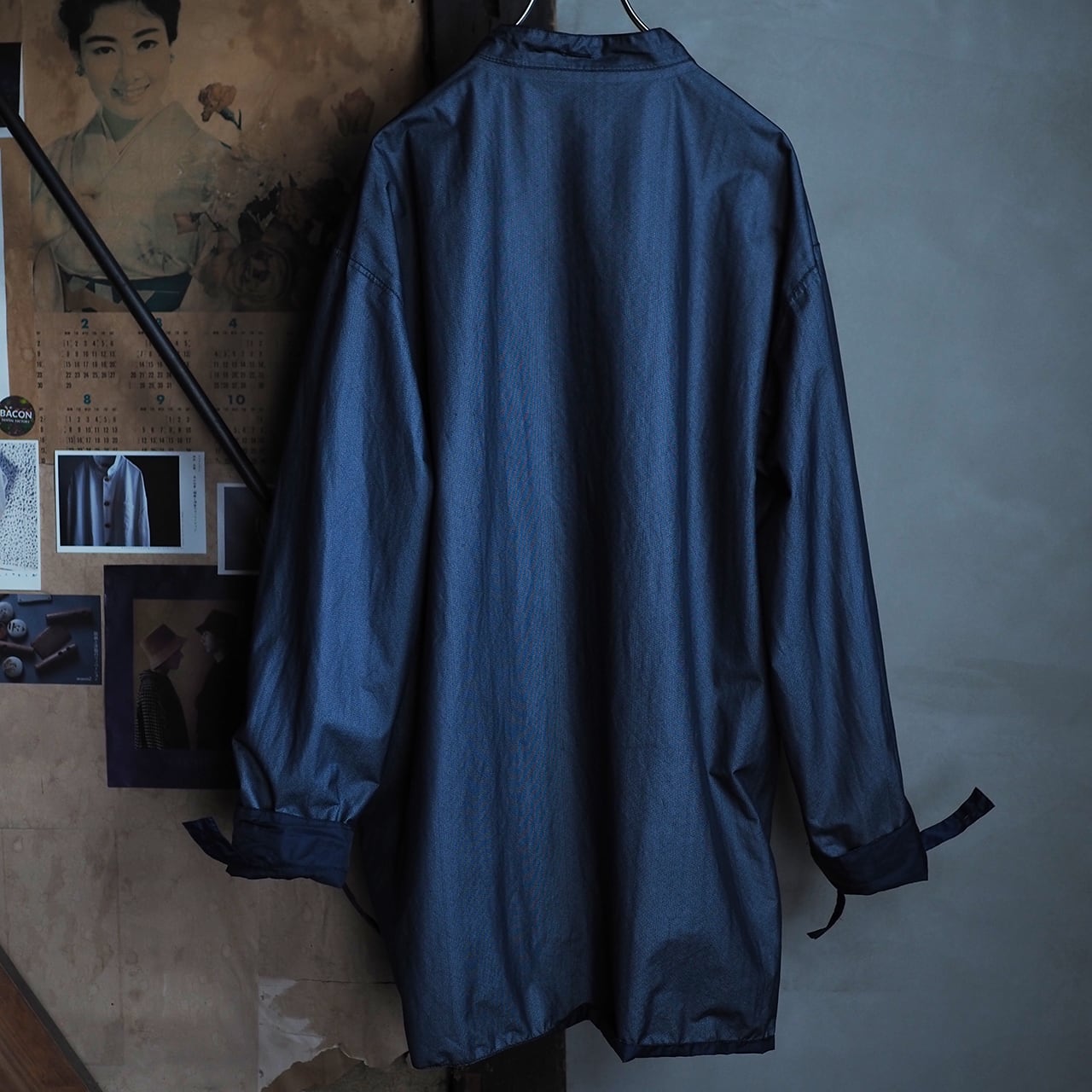 元は鮮やかなロイヤルブルーですが、ブラックで製品染めをすることで黒みを強めたネイビーに変化させています。