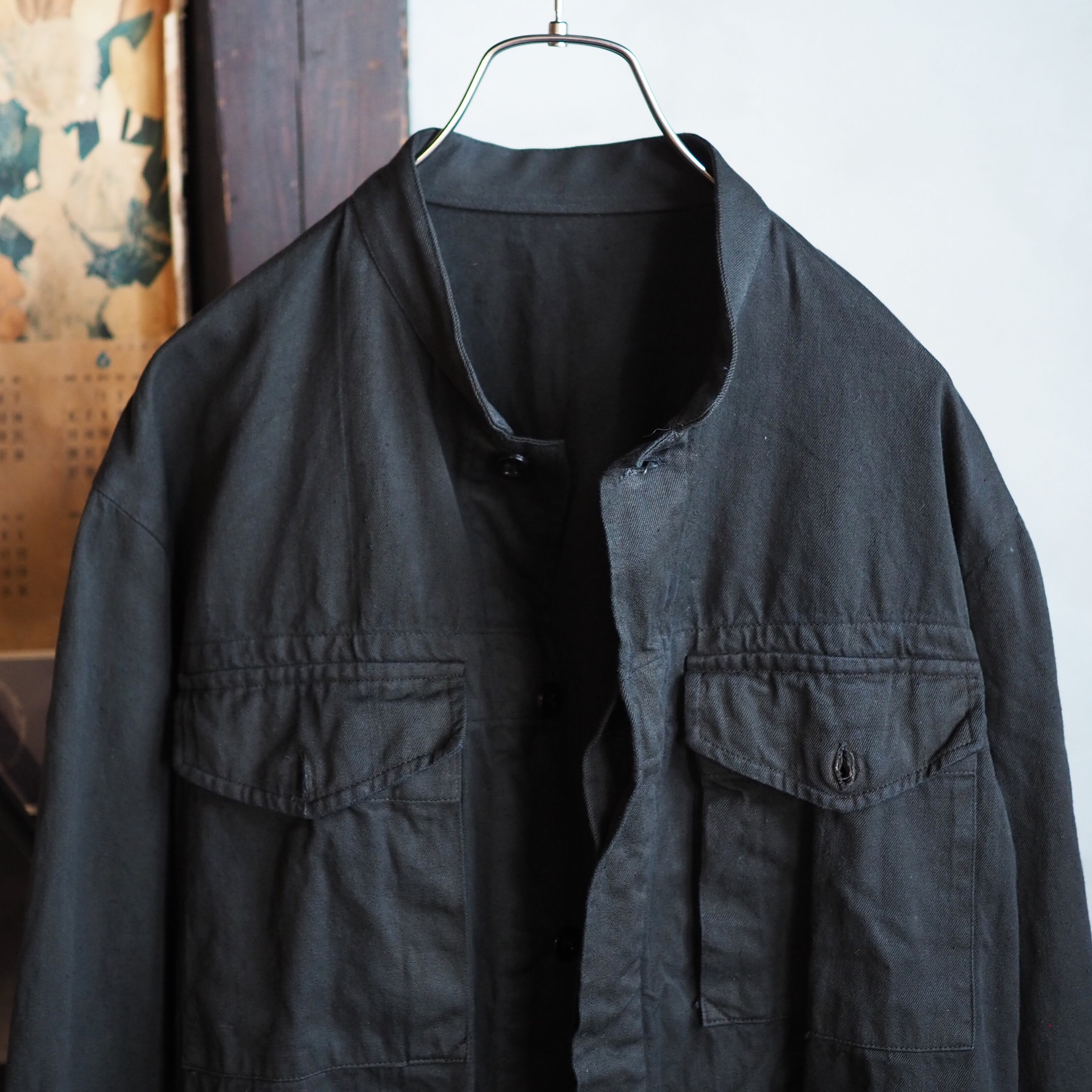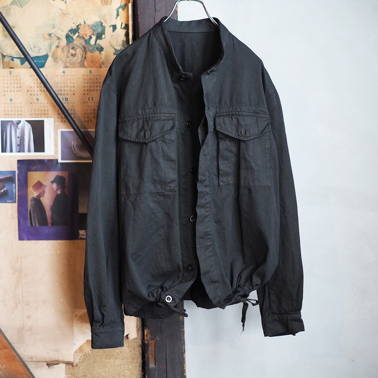 おみつのおつくろい スタンドカラー フライフロントシャツジャケット(製品染め・ブラック)