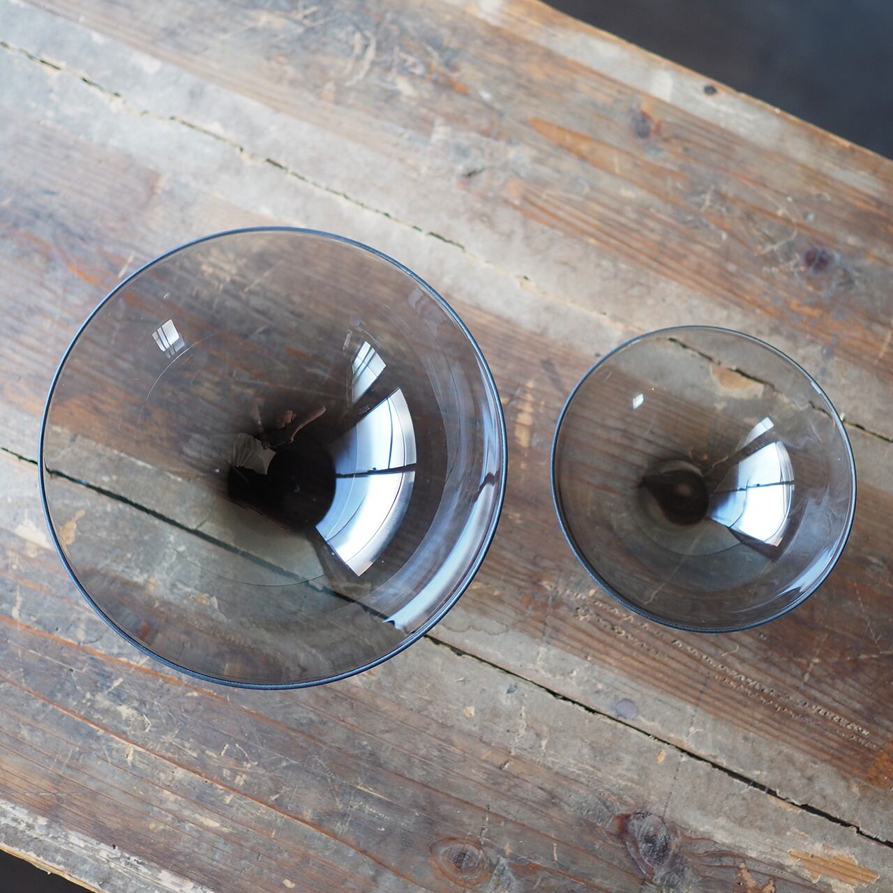 色も均一ではなく底から口元にむかって無色透明に近くなっていくので、食材の色を邪魔せず使いやすい色合いだと思います。