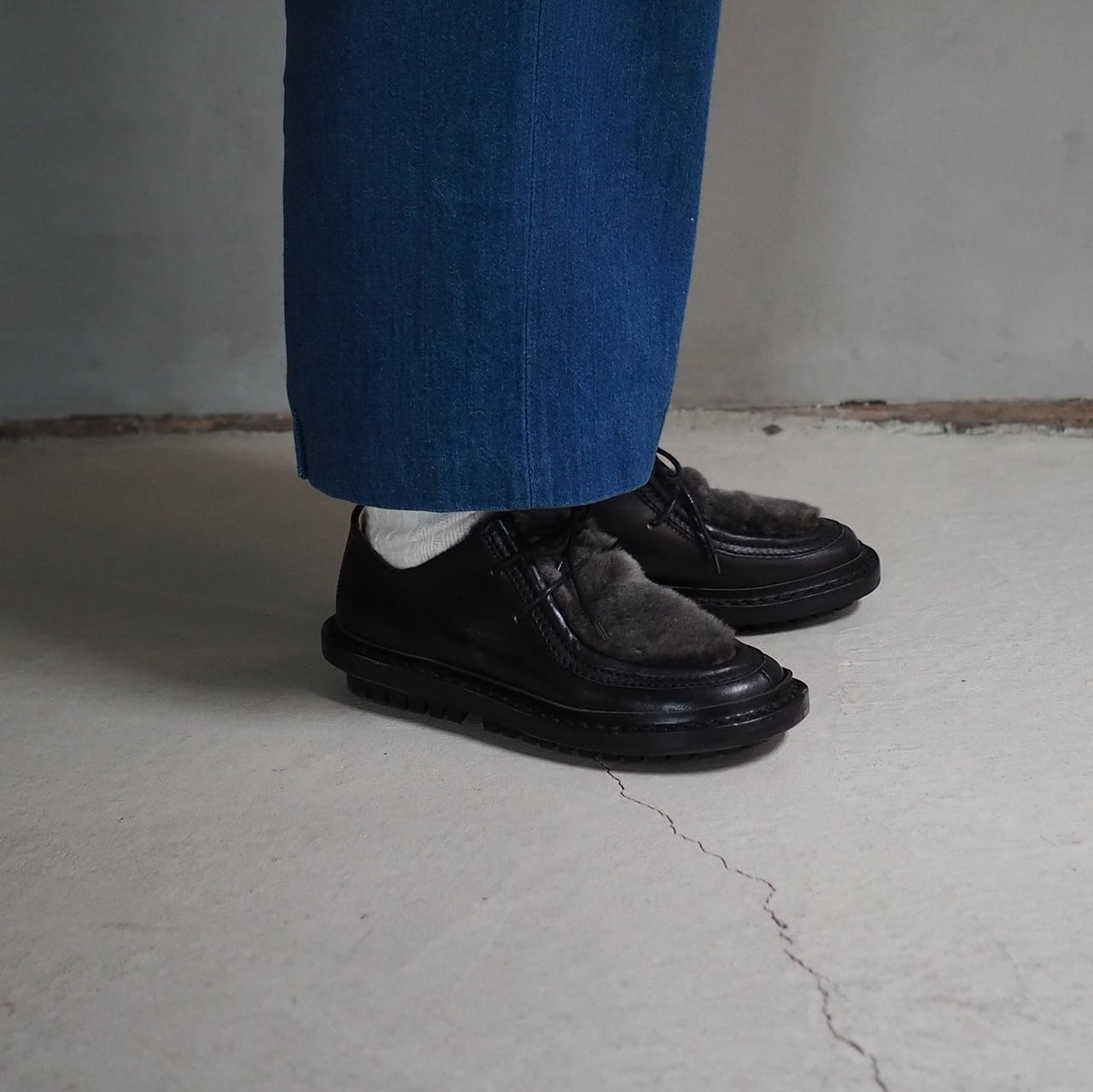 程よいボリューム感が足元に安定感を与え、様々なパンツのシルエットに対応します。