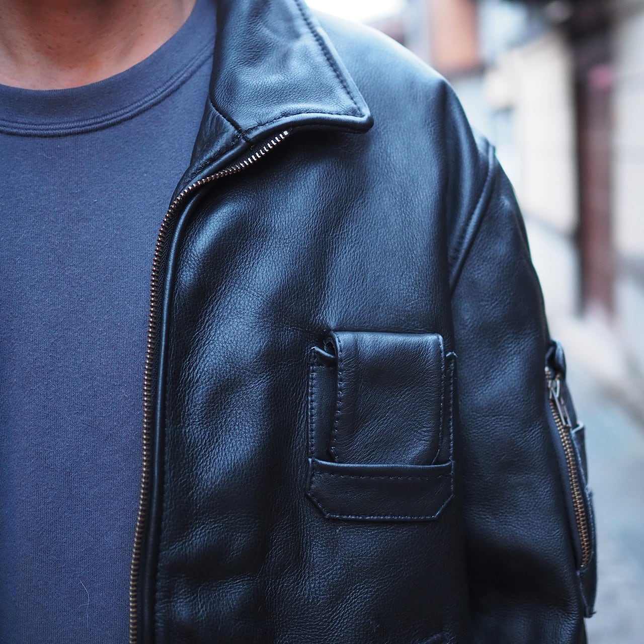 新品独自の綺麗さによる都会的な印象と加工によって生まれた自然なシワ、歪みがヴィンテージさながらの迫力を演出が合わさってより洗練されたレザージャケットに仕上がっています。