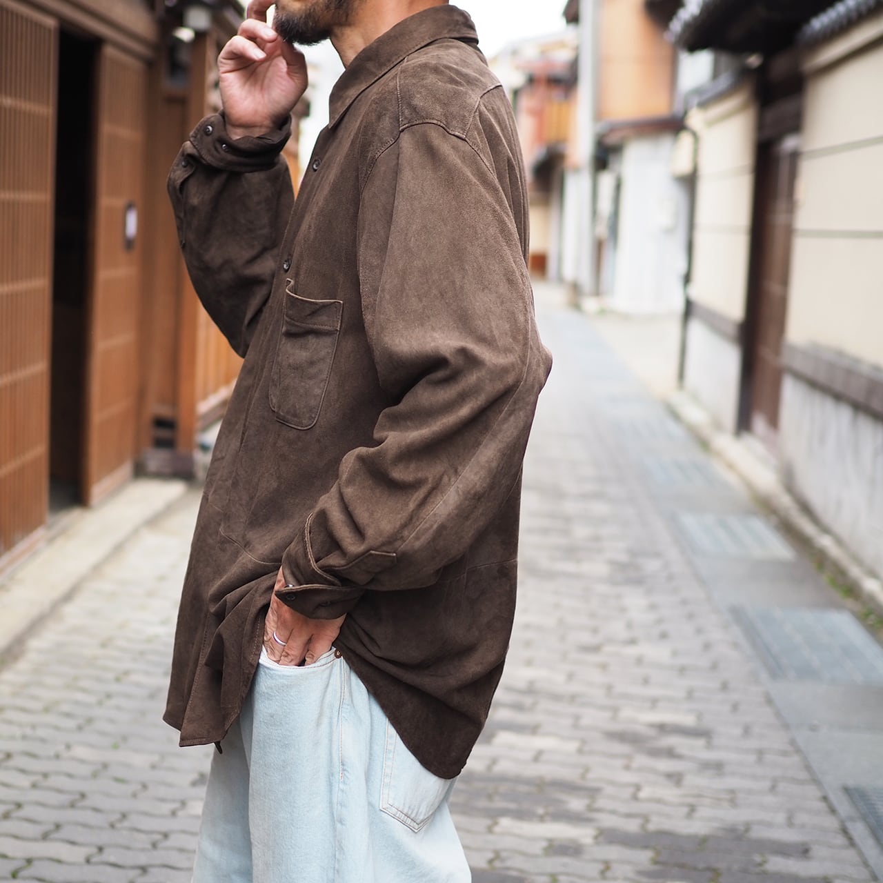 POLO RALPH LAUREN / USED スウェードレザーシャツジャケット・モカブラウン