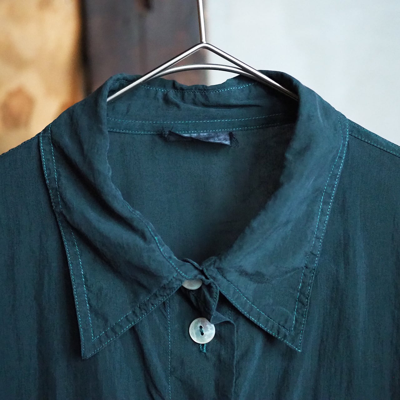 本作はノンブランドのシルクシャツジャケットに製品染めを施した商品です。
