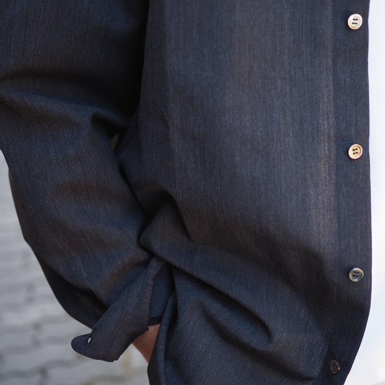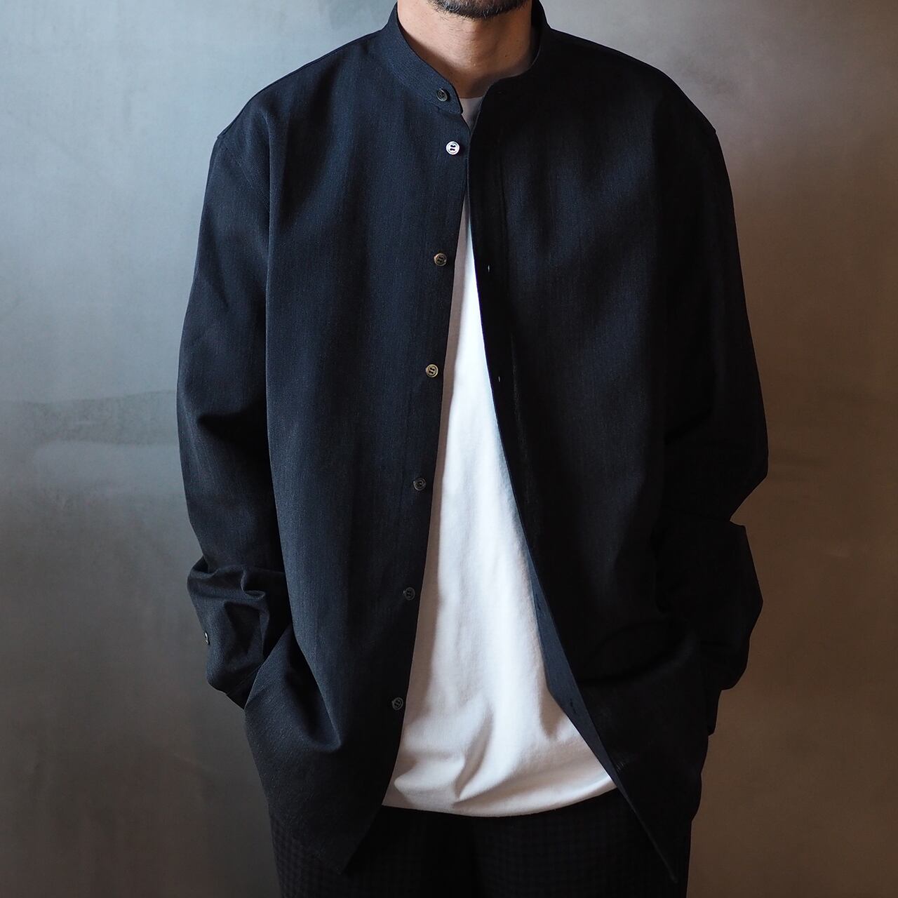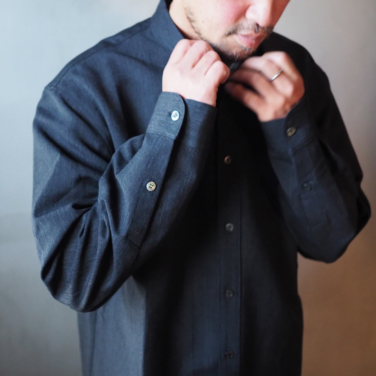 山内 26143-wa/ウール×和紙・ダブルステッチシャツ・charcoal black