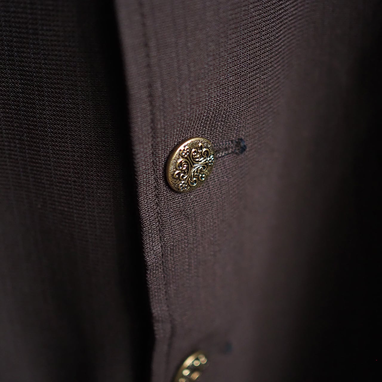 仕入れた時点にあったシミやほつれ、穴などを補修しながら現代のデザイナーズのお洋服にも合わせやすくなるようにちょっとしたひと手間を加えたものです。