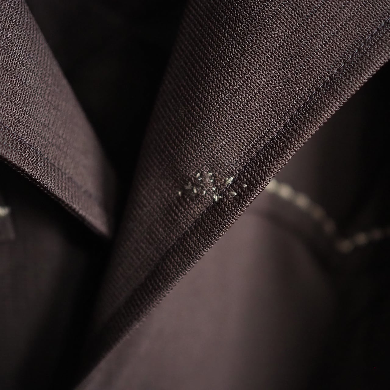 下襟のほつれはハンドダーニングでリペア。こちらもデザインとして表現しています。