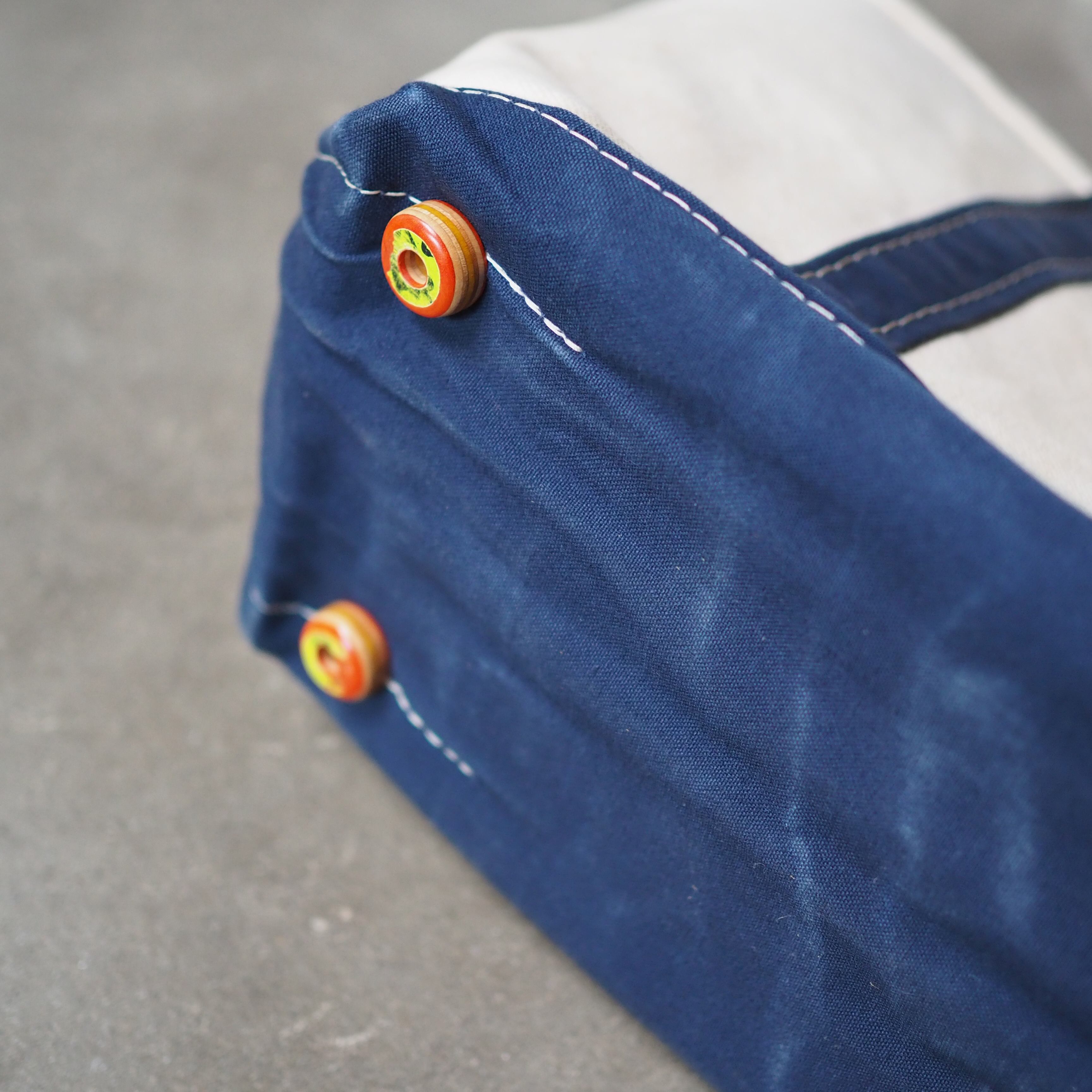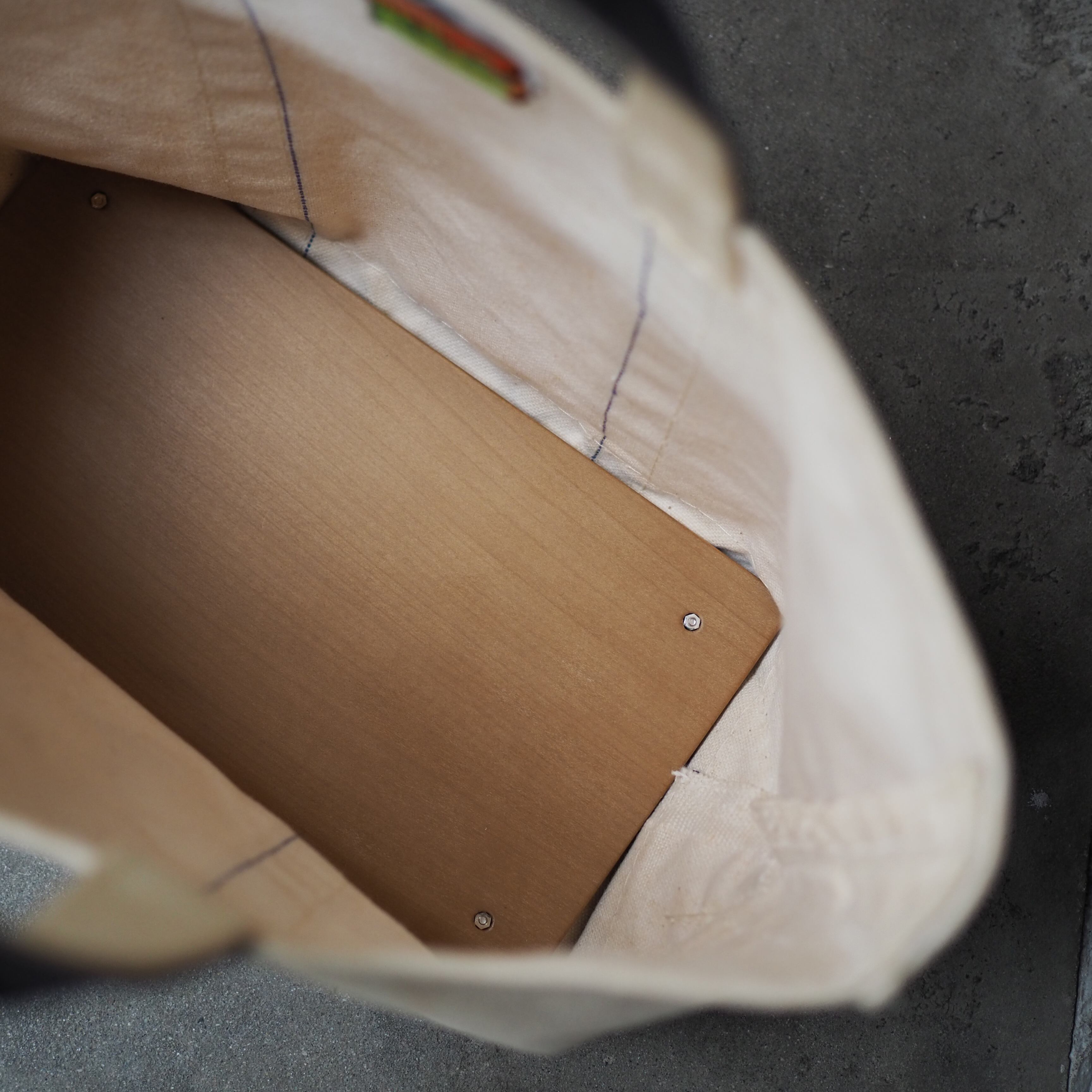 バッグ本にはホオの木によるインソール+スケボーデッキから作成したキャッチをはめてあります。洗濯がしやすいようにキャッチはネジ式になっていて取り外し可能になっています。