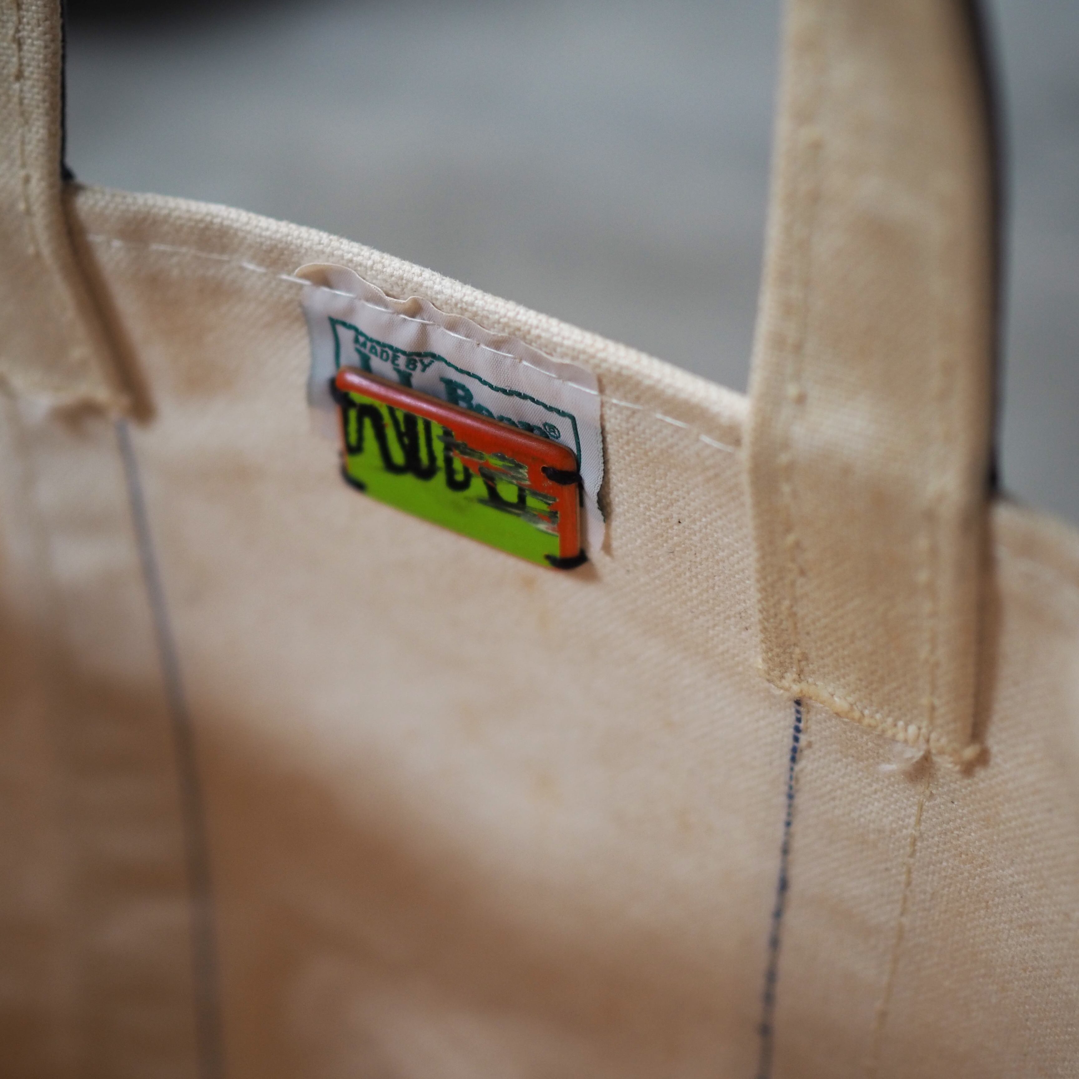 「樹を纏う」をテーマに木の眼鏡を制作する63mokkoこと神田武蔵さんによるUsedのL.Lbean bagのトートバッグと木のコラージュ。