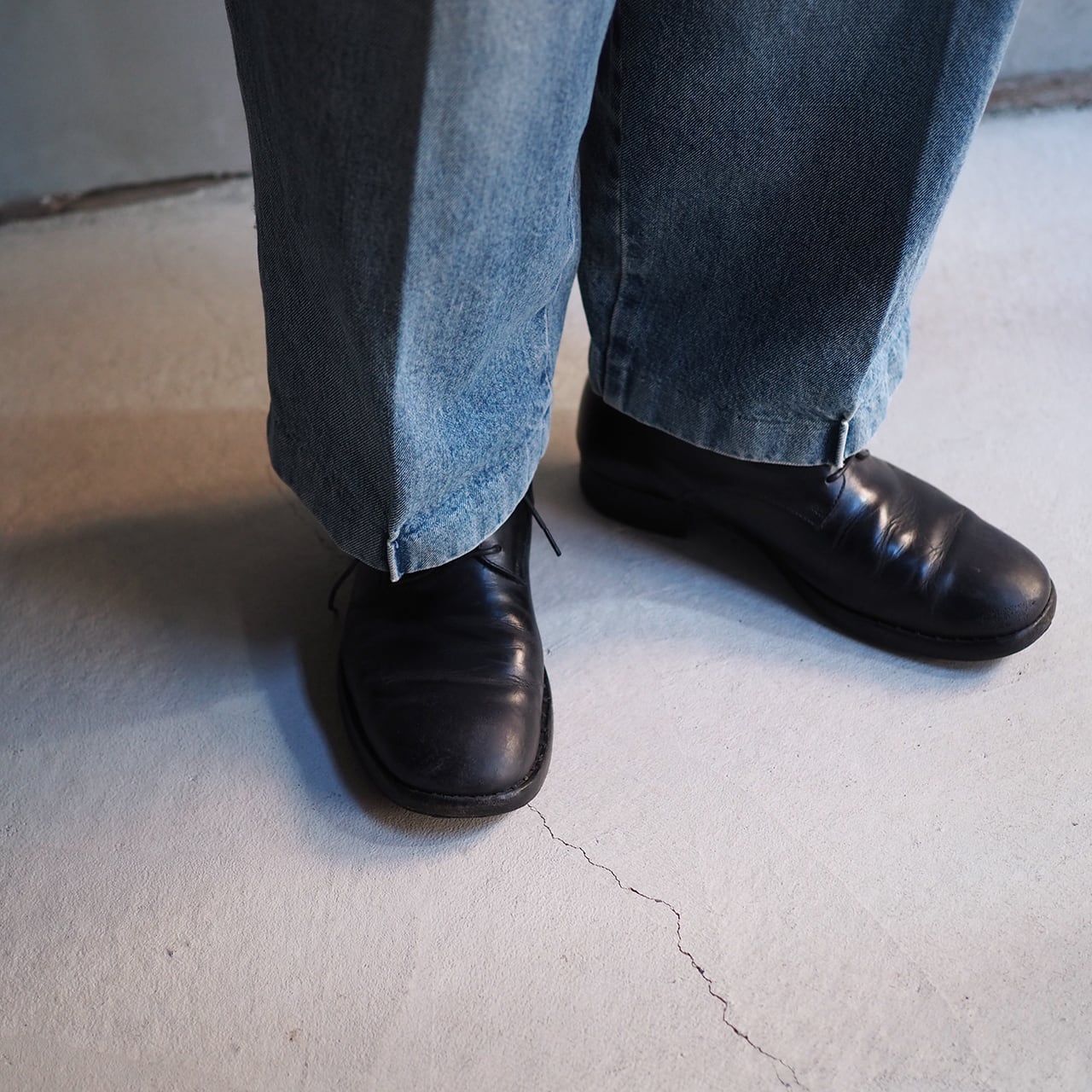美しい色落ちから作られた優しい色合いは程よく力の抜けたラフな印象で美しいシルエットと合わさり都会的です。