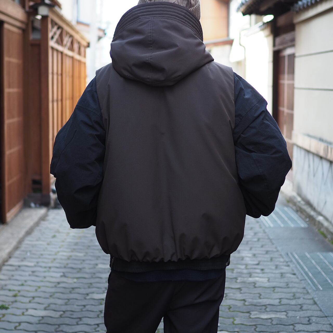本作はフライトジャケットとフーデッドベストが一つになった2 in 1ジャケット。