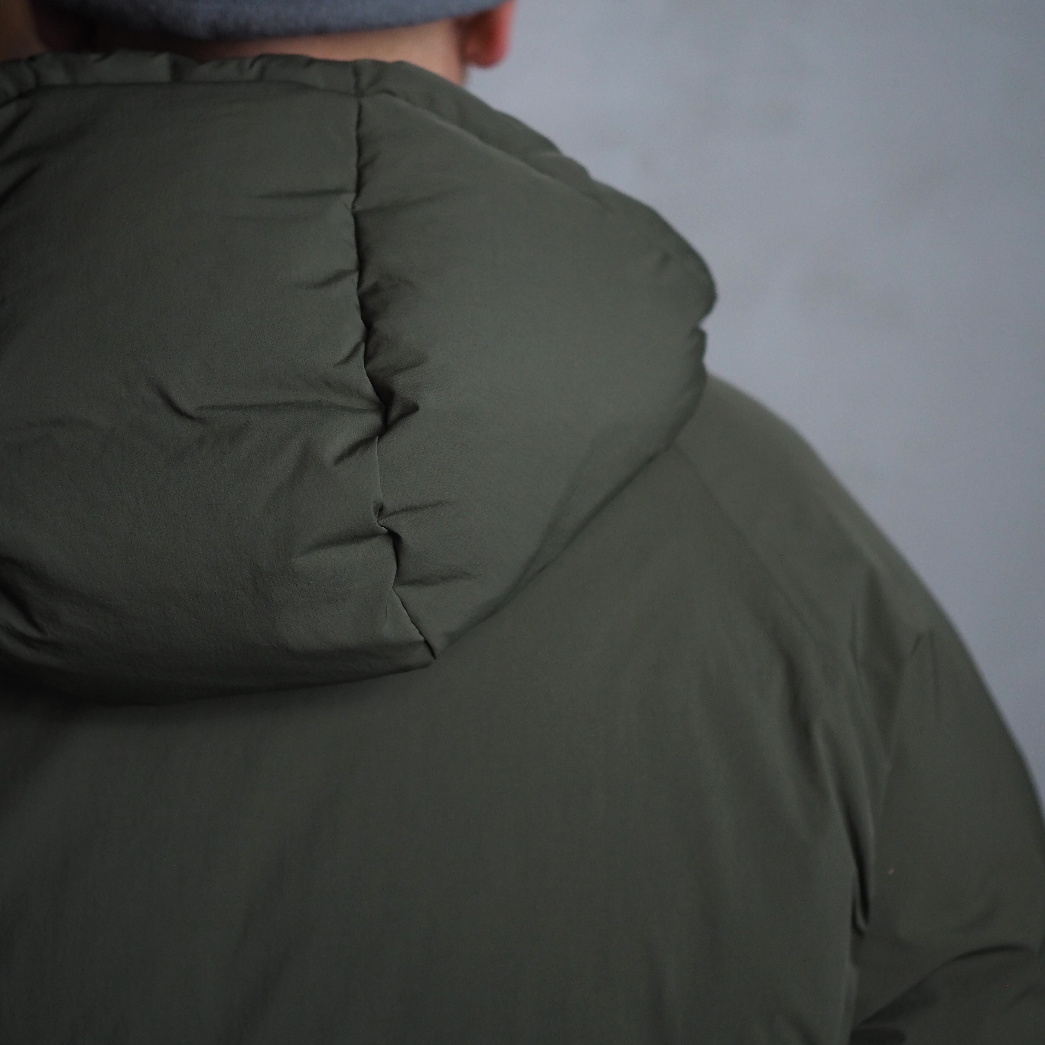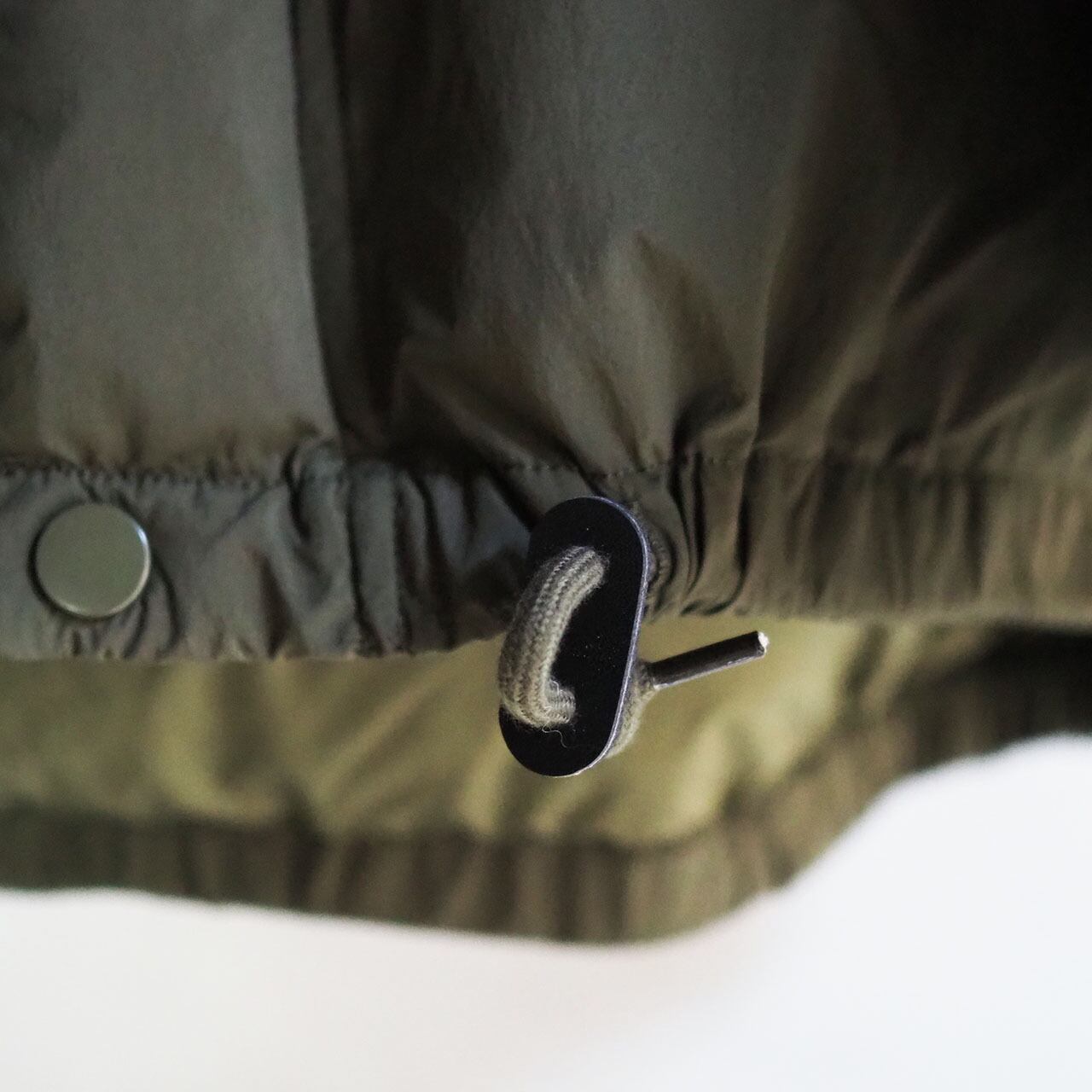 裾に付属するドローコードを絞ることでさらに丸みを帯びたシルエットで着用することが可能です。