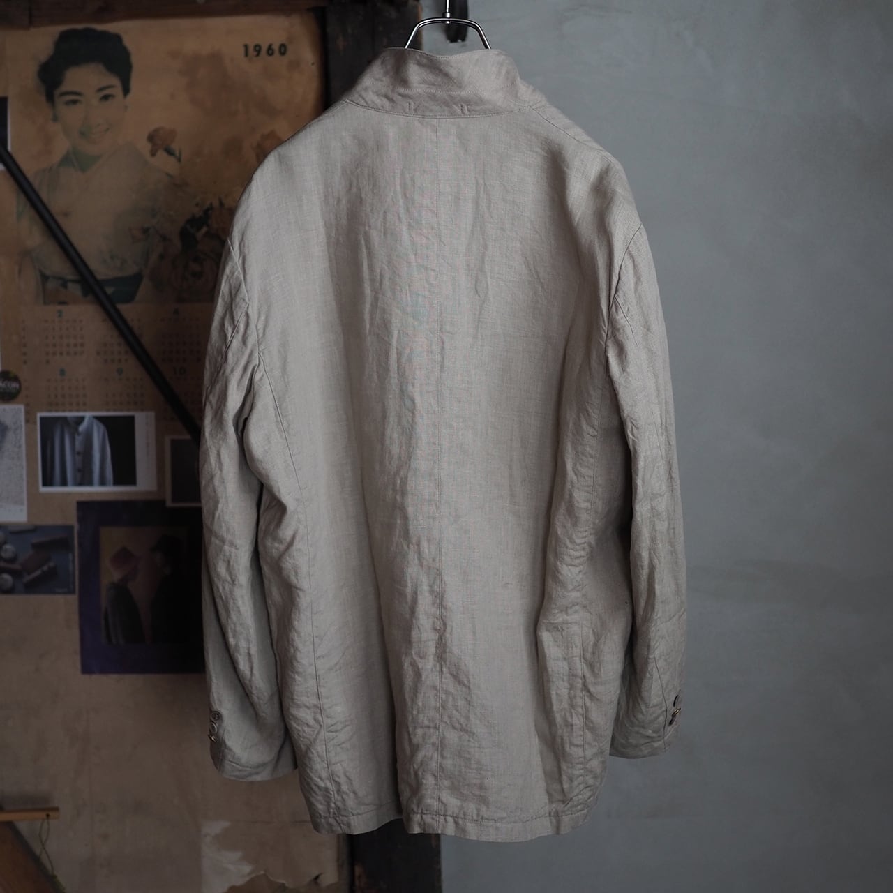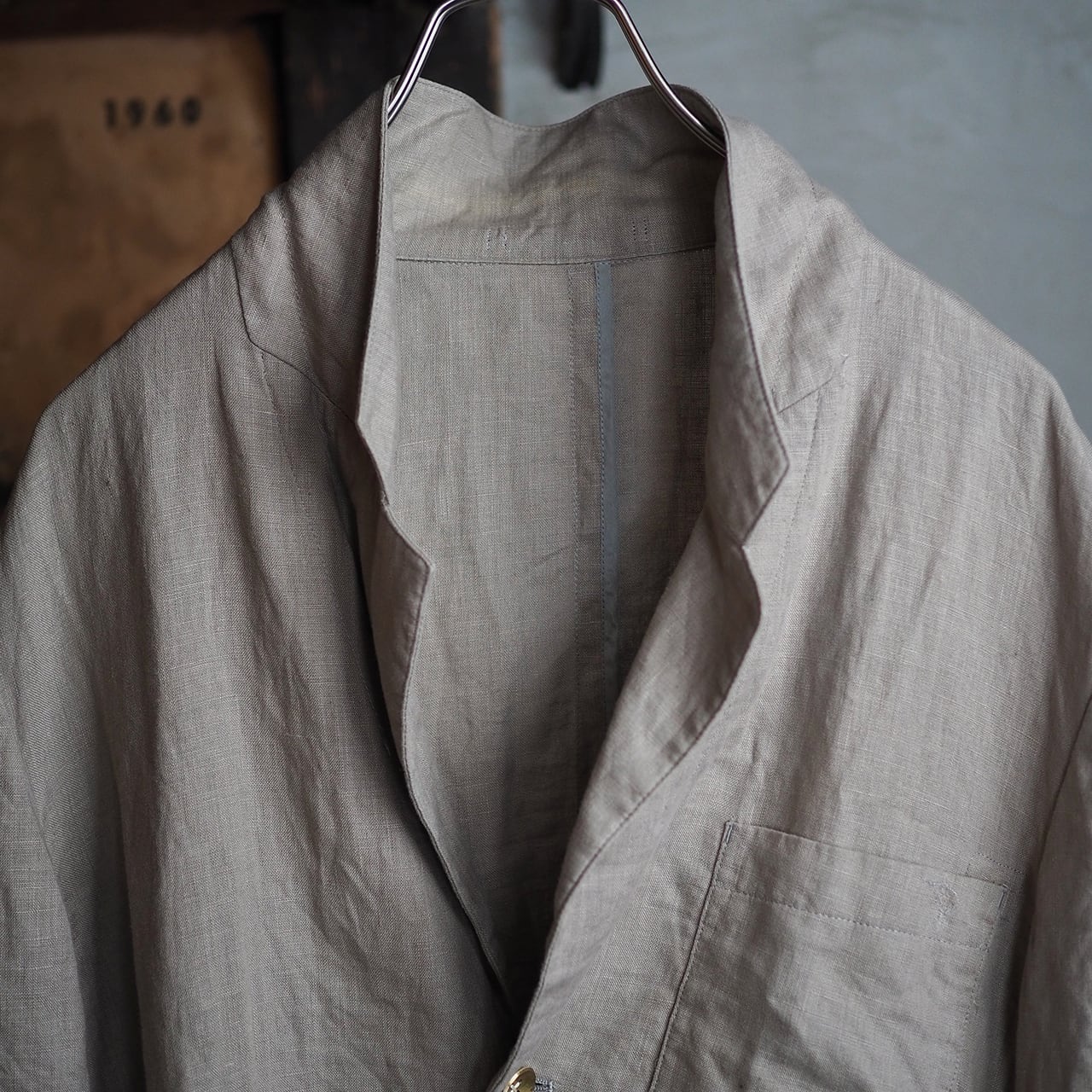 美しいグレージュカラーが魅力なリネン素材、内部における丁寧なパイピングワーク等、質の良さを感じるジャケットです。
