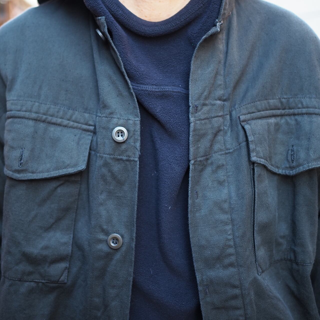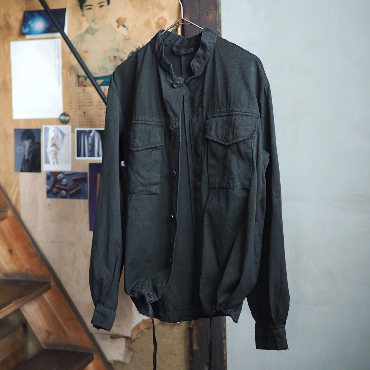 omitsuのおつくろい スタンドカラー フライフロントシャツジャケット(製品染め)